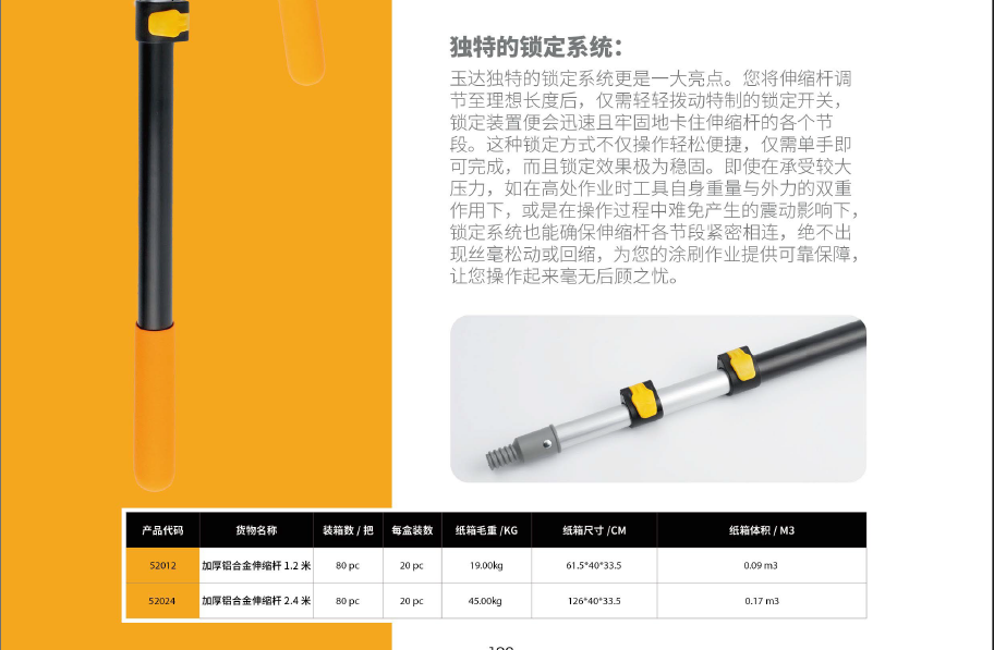 锁定系统也能确保伸缩杆各节段紧密相连,绝不出